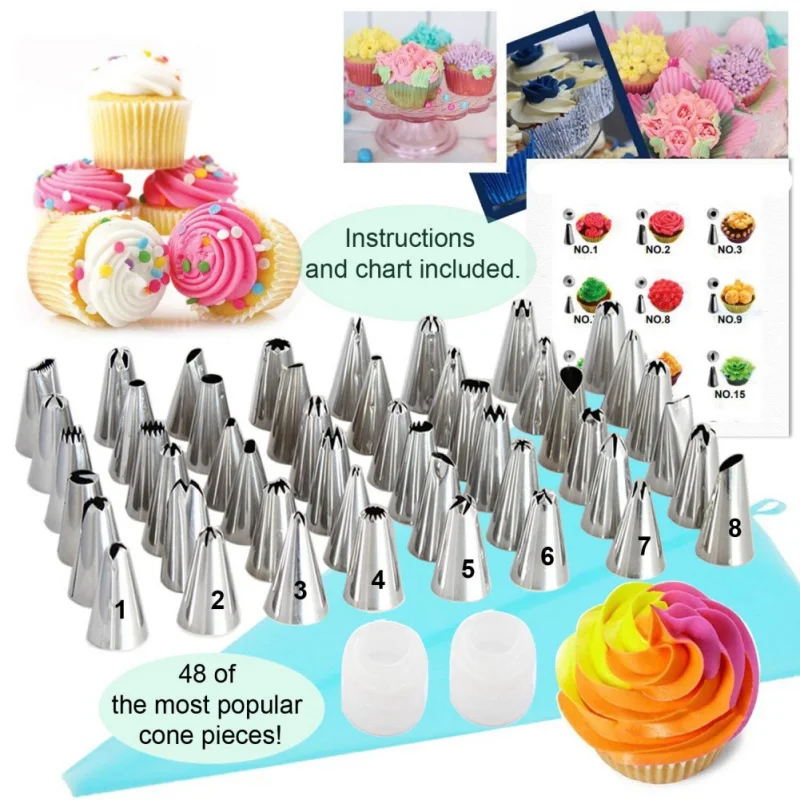 Professional Cake Decorating Supplies Set 90Pcs Stainless Steel Cream Tips Portable Piping Nozzles