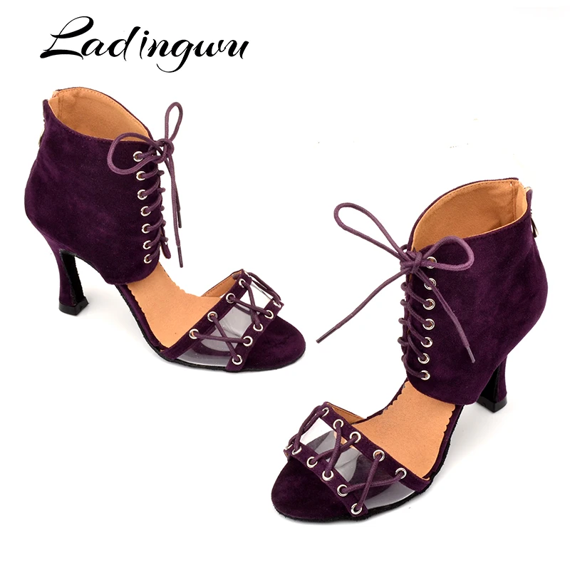 Ladingwu Fashion Latin Dance Boots Womem Salsa Patty Performance Dance Shoes Soft Bottom Ballroom D