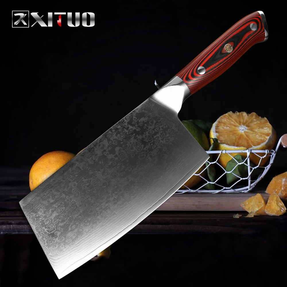 XITUO Damascus Chef Knife 7 Inch Chinese Kitchen Knife Sharp Cut Cleaver Slice Professional Kitchen
